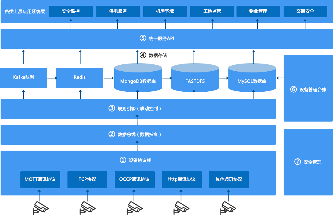 接收PaaS层的业务指令,并进行相关协议和数据转换后,下发给终端设备。
