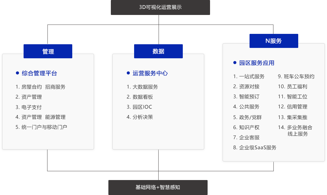园区综合服务平台 + 智能物联 + BIM可视化 + 创新运营